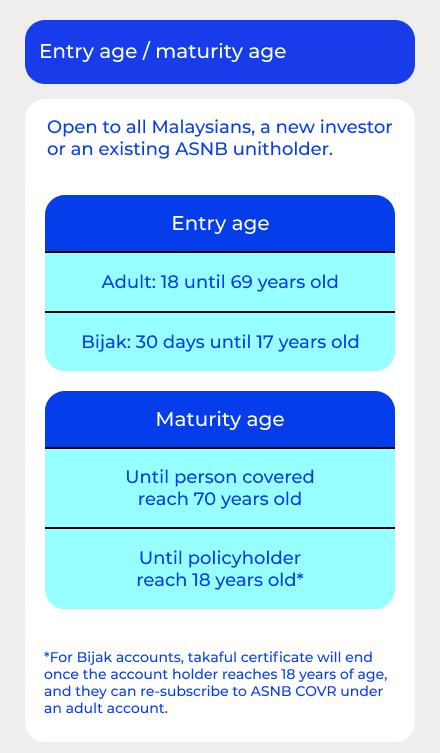 ASNB COVR is a strategic collaboration between Amanah Saham Nasional Berhad (ASNB) and Takaful Ikhlas Family Berhad (TIFB) which is a member of Perbadanan Insurans Deposit Malaysia (PIDM). Unitholders are advised to to read the Product Disclosure Sheet (PDS) and terms and conditions before deciding to participate in ASNB COVR.